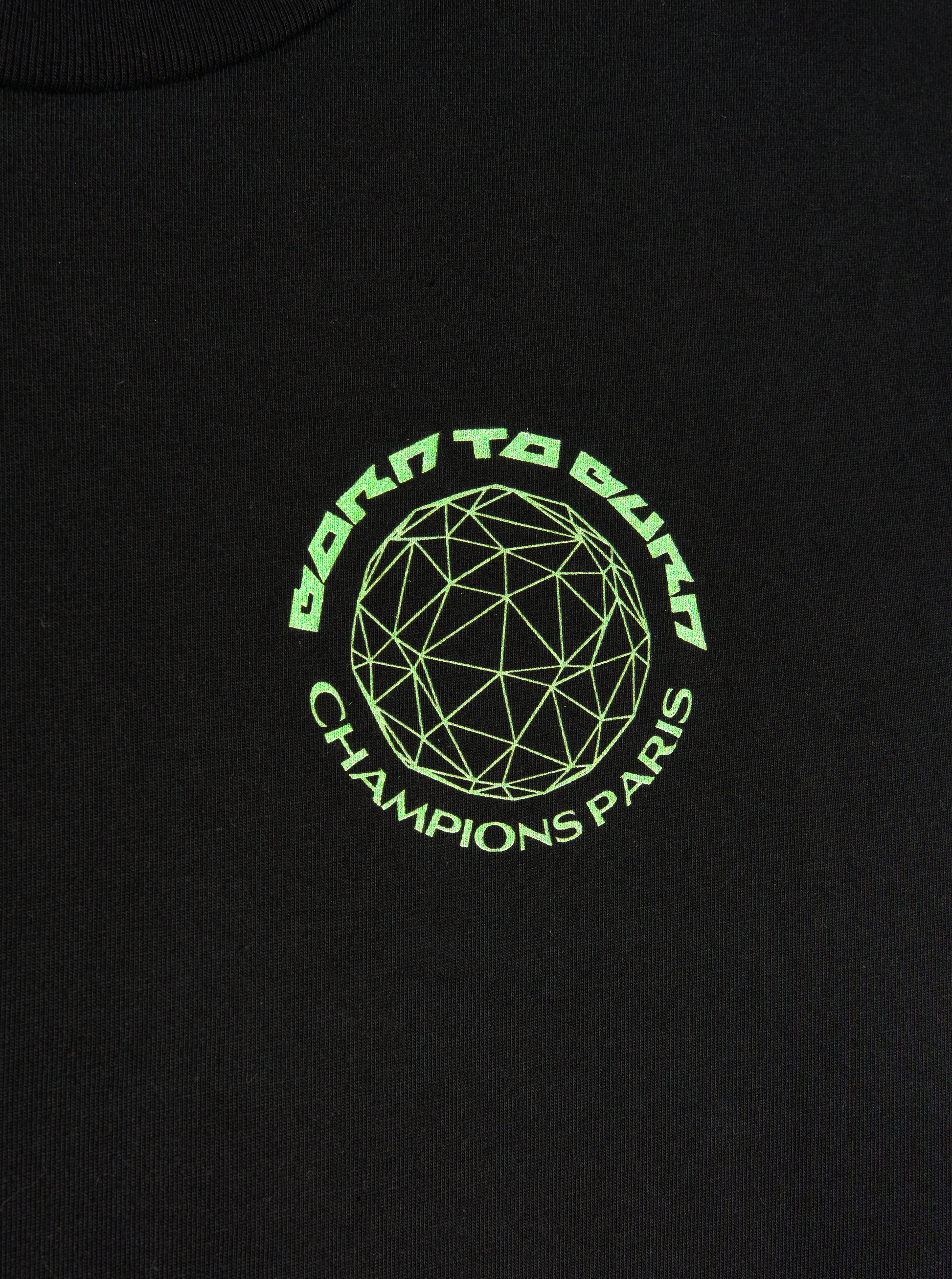 - 柔らかな手触りのプラスチゾル生地を使用し、前面と背面にChampionsスクリーンプリント、ネックラベルは織り込み済み